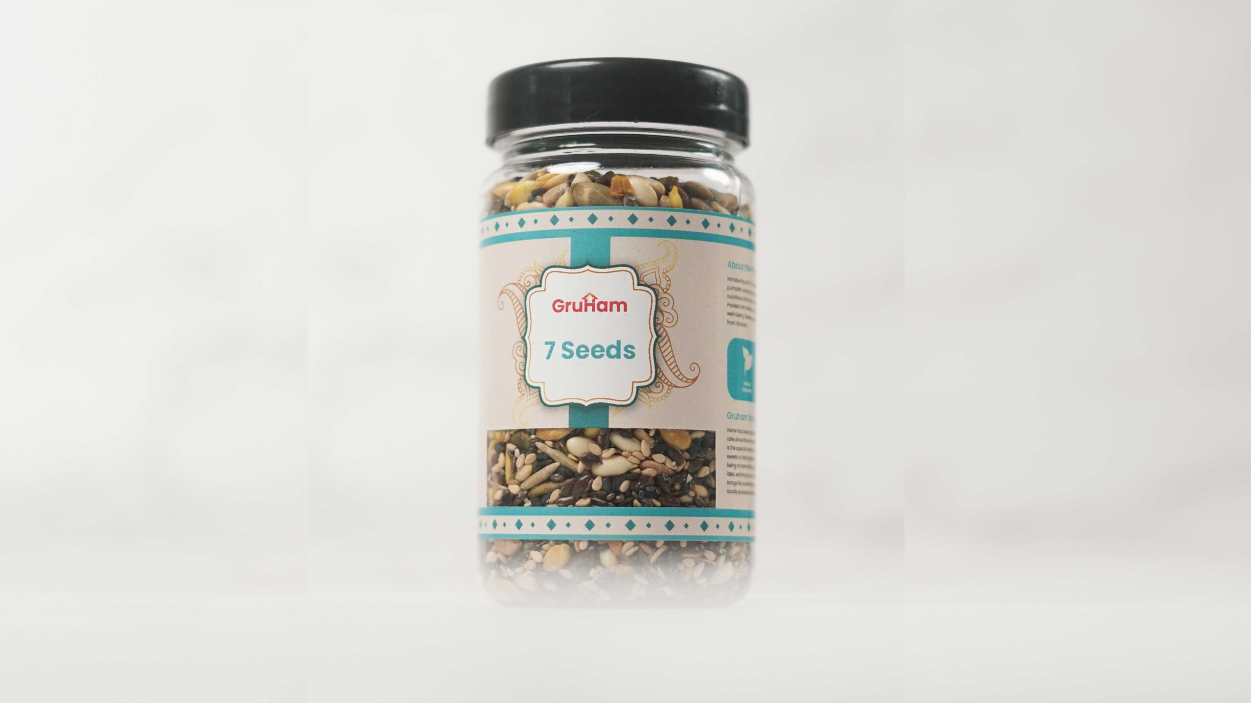 Gruham’s 7 Seeds is a wholesome mukhwas made with sunflower, chia, flax, black sesame, white sesame, watermelon and pumpkin seeds, — lightly salted, roasted, and perfect for mindful, everyday snacking.