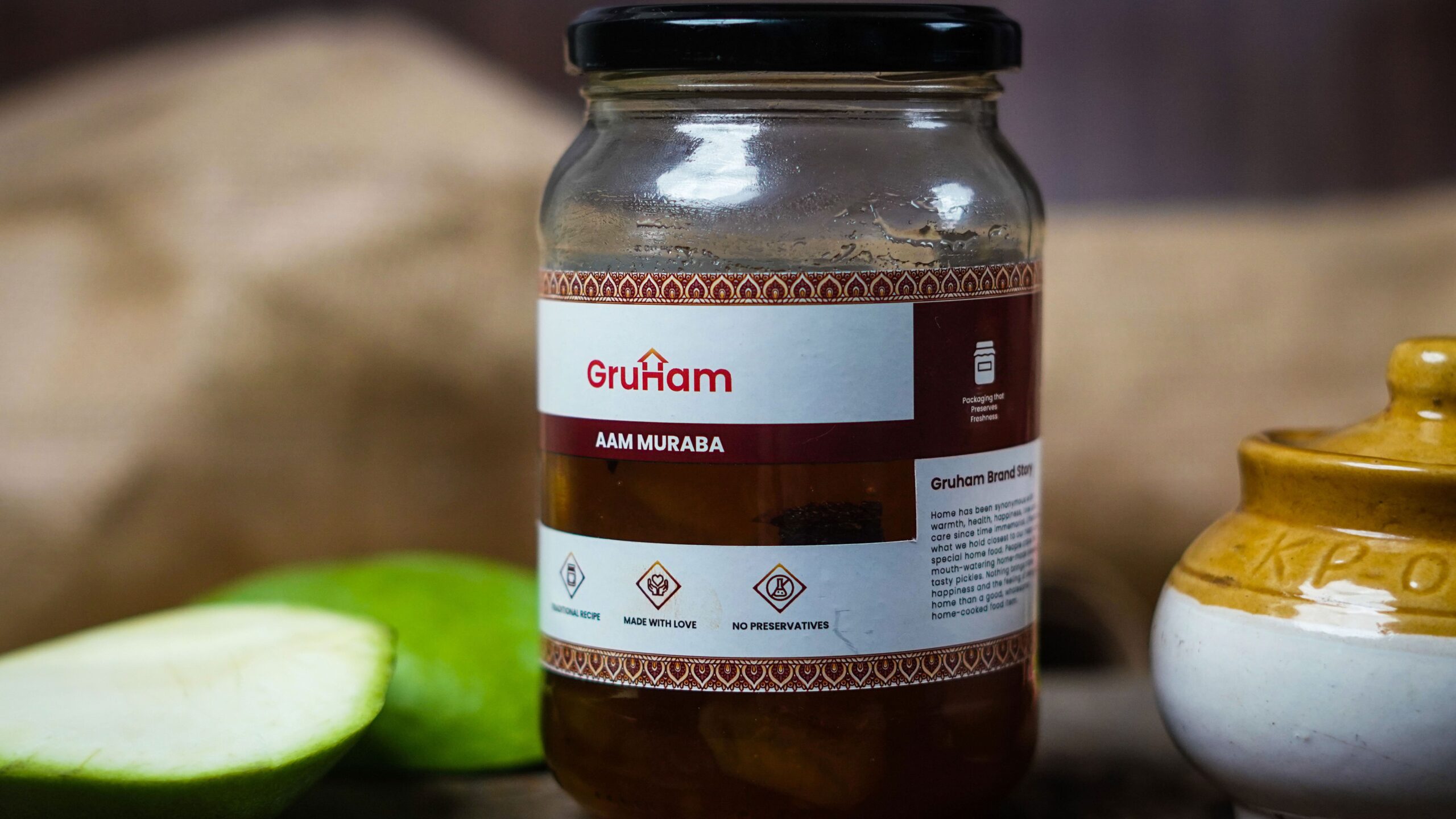 Gruham’s Kurya Keri is a bold, hand-cut mango pickle made with traditional spices and groundnut oil — the ultimate Gujarati classic in a jar.