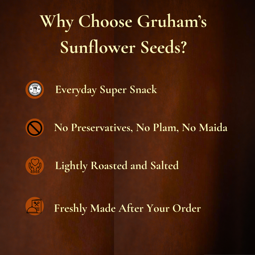 Snack smart, feel light, and nourish from within. Order Gruham’s Sunflower Seeds today — made fresh, made honest.