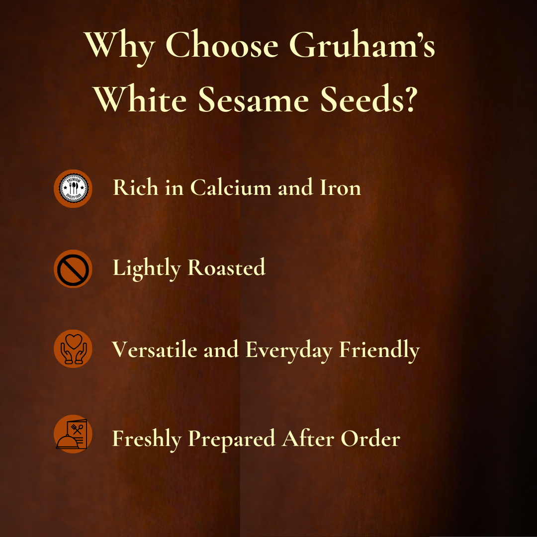 Nourishment doesn’t have to be complicated. Add Gruham’s White Sesame Seeds to your pantry today for a crisp, calcium-rich snack that’s rooted in tradition.
